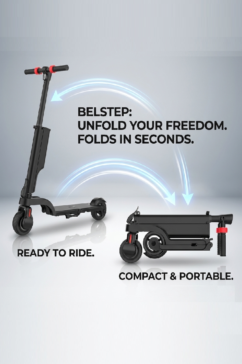 Fold your Belstep scooter to keyboard size and carry freedom wherever you go.